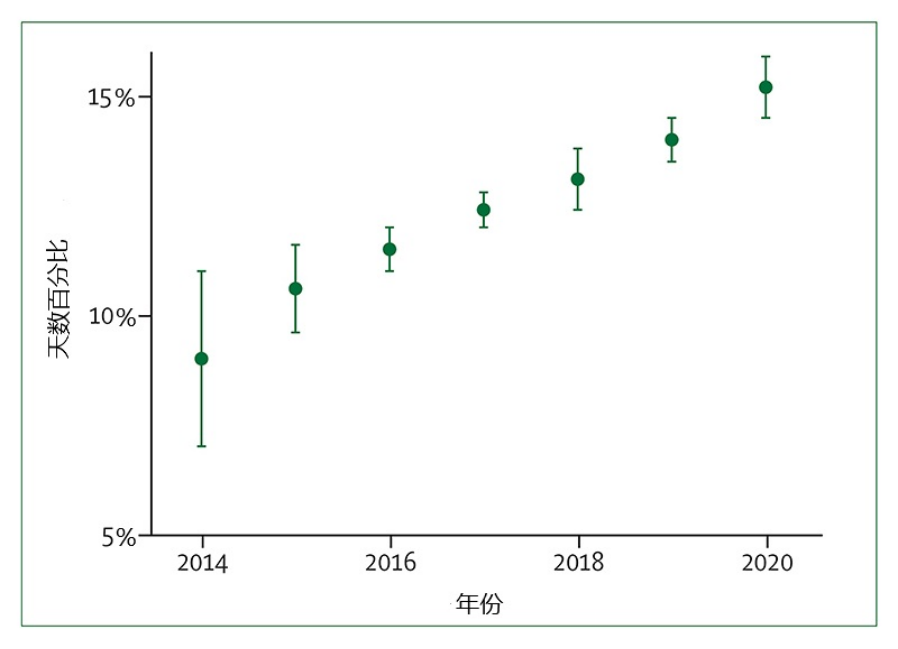 图1 历年主粮生长季遭遇极端天气的天数百分比