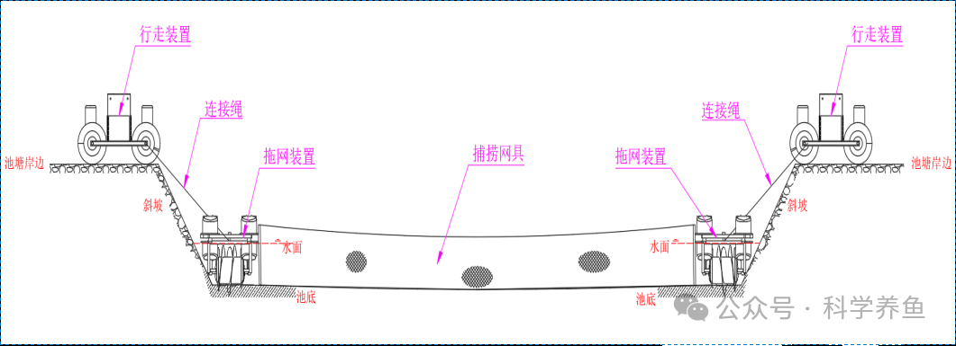 近年来,水产养殖机械化水平持续提升,但池塘捕捞设备始终“不给力”:西北部分地区用拖拉机拉网,要求池塘面积大、池型规整、塘埂宽阔平整,多数池塘难以满足;江苏等地尝试用绞机替代人工,却受限于边坡齐整、坡度较缓的池塘,效率依然偏低。更严峻的是,传统捕捞人员逐渐老化,破解机械化捕捞难题成为淡水渔业发展的迫切需求。