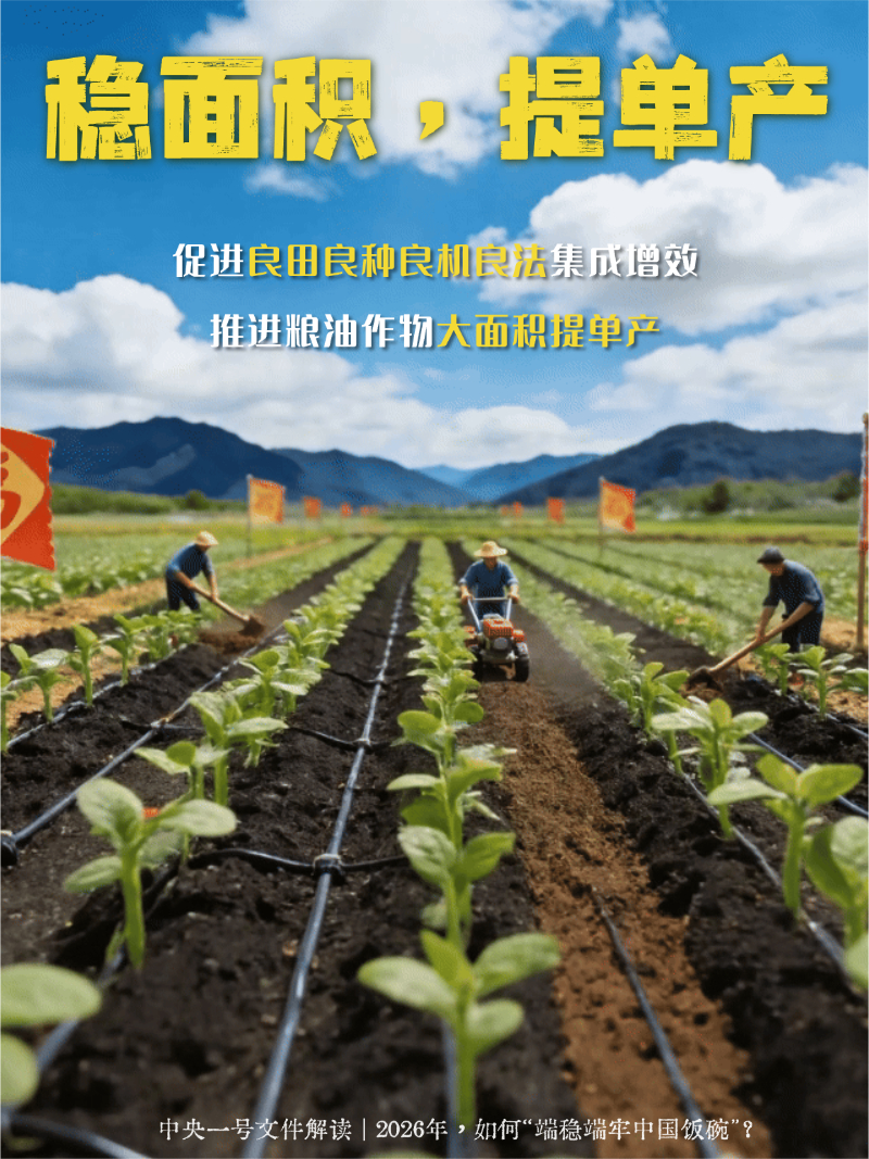编者按:2月3日,《中共中央、国务院关于锚定农业农村现代化、扎实推进乡村全面振兴的意见》公布,这是党的十八大以来指导“三农”工作的第十四个中央一号文件。2026年如何端稳端牢中国饭碗,一组海报看个明白!