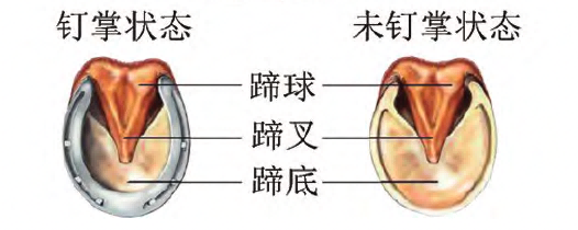 蹄底:位于最里层的一个凹陷结构,比蹄壁要柔软些,通常不直接承受重量。